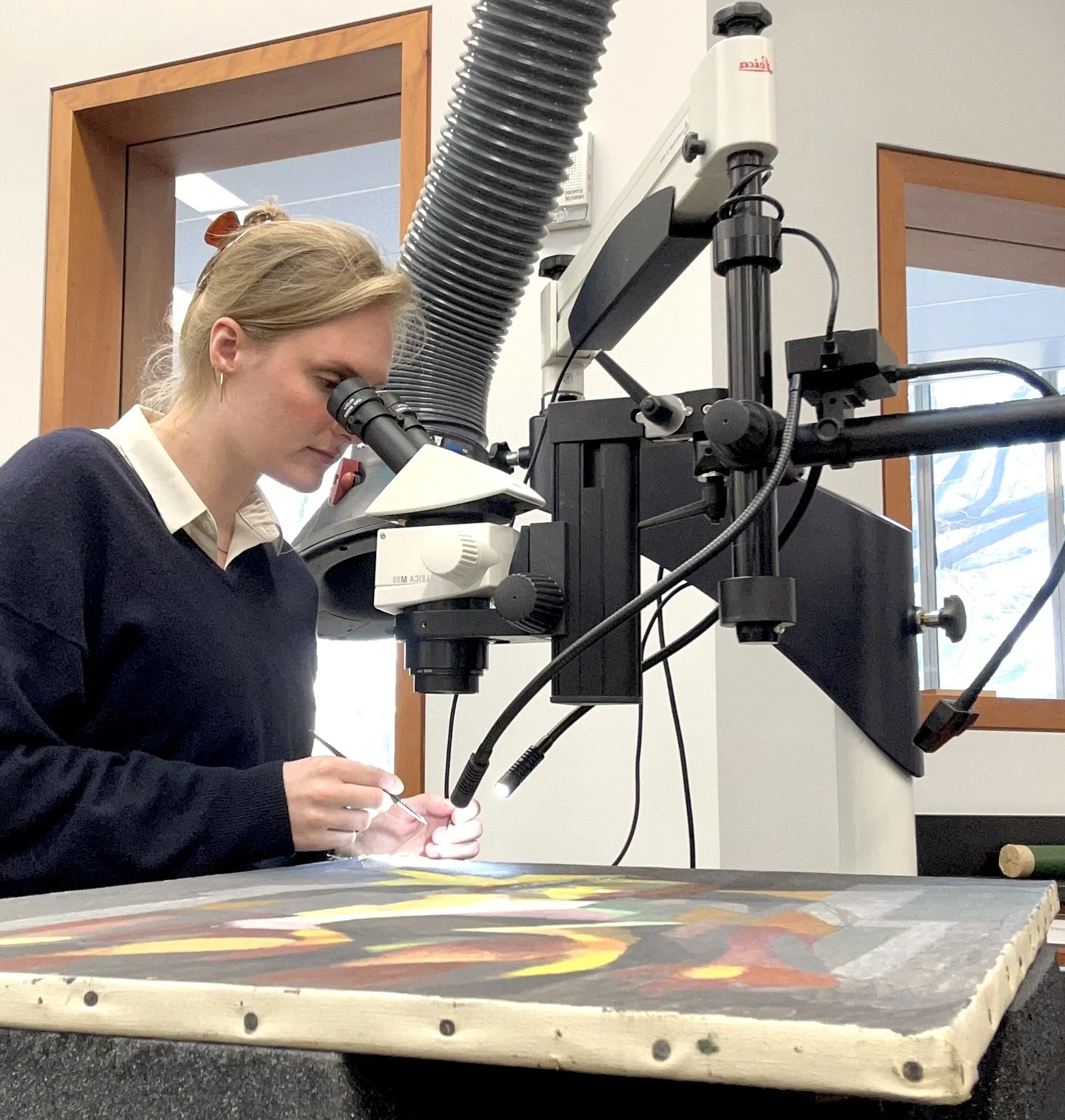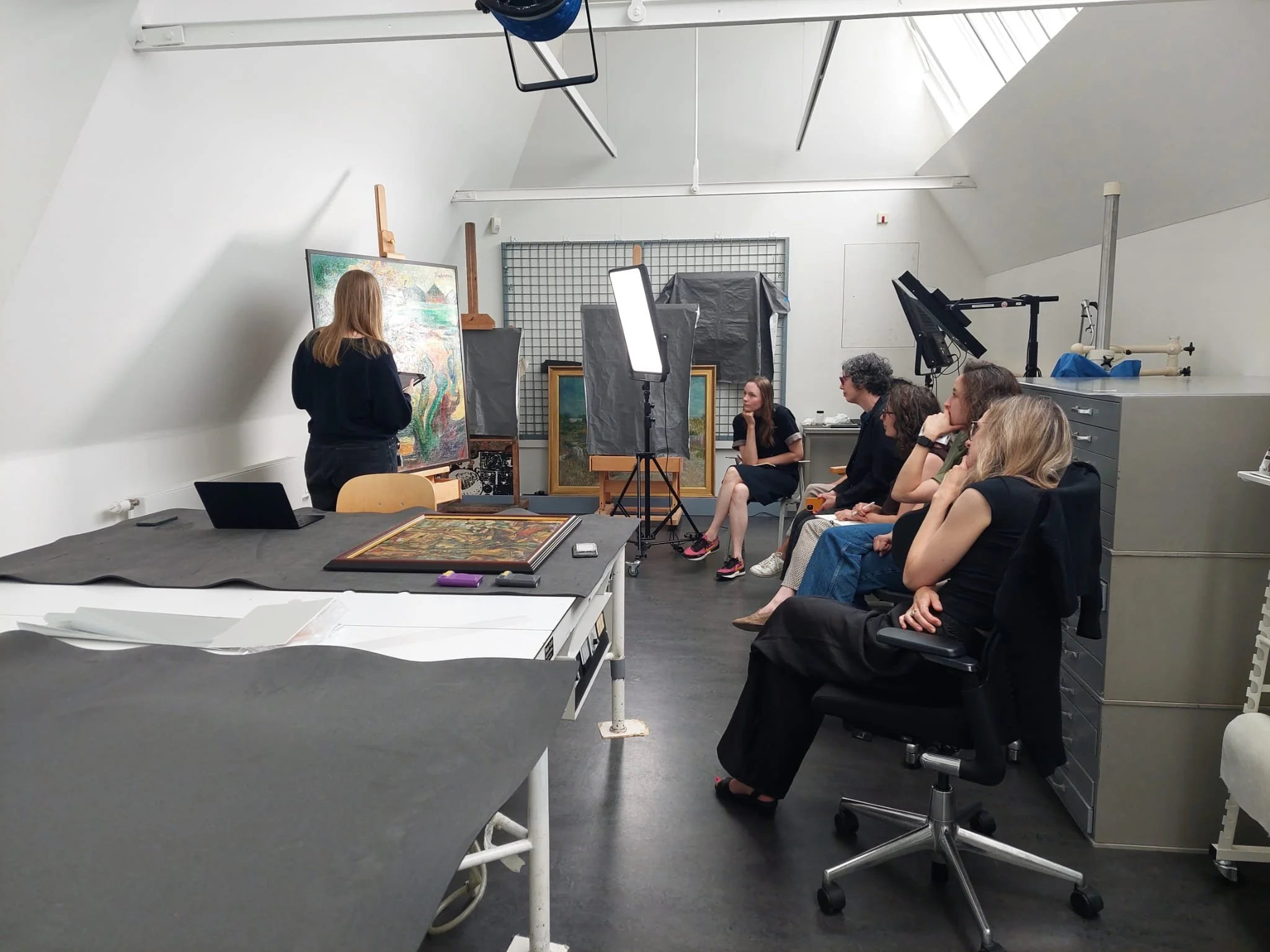 Het inspecteren en documenteren van de conditie van een schilderij.