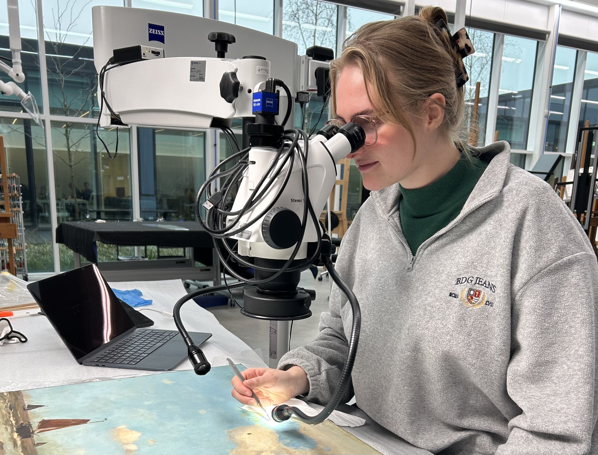 De restauratie van moderne en hedendaagse schilderkunst spreekt Camilla in het bijzonder aan vanwege de grote diversiteit aan materialen en technieken. Kunstenaars uit de twintigste en eenentwintigste eeuw experimenteerden vaak met nieuwe verfsoorten, dragers en toepassingen, wat unieke behandelingsvraagstukken met zich meebrengt. Het onderzoeken van deze materialen en het vinden van passende behandelmethoden staan centraal in haar werk.